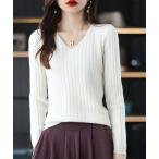 キーワード:ニット セーター レディース vネック 長袖 無地