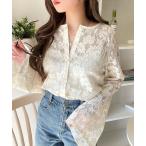 キーワード:ブラウス シャツ レディース ショート丈 ノーカラー レース 長袖 WEB限定 エレガント オケージョン オフィスカジュアル キレイめ デート 記念日 春 定番