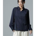 キーワード:ブラウス シャツ レディース スタンドカラー フリル 長袖 無地