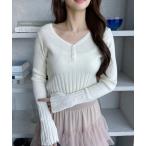 商品名:ウエストデザイン Vネック リブニット トップス