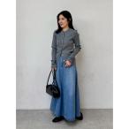 商品名:後ろゴムマチデザインフレアデニムスカート【手洗い可能】
