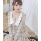 商品名:韓国ファッション ワンピース ツイード 襟付き Uネック 長袖 チェック柄 裾フリル ニット タイト ミニ キャバドレス (Sサイズ〜Lサイズ)