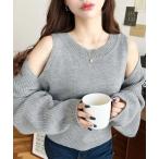 キーワード:ニット セーター レディース クルーネック 長袖 無地
