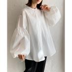 商品名:スタンドカラー裾フレアバルーンスリーブボリューム袖ブラウス
