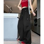 キーワード:カーゴパンツ レディース ウエストゴム ストレート ハイウエスト フルレングス ワイドパンツ 無地