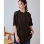 キーワード:ブラウス シャツ レディース コットン ノーカラー レース 七分袖 五分袖 無地 ドライブ ナチュラル ベーシック 夏 公園 大人カジュアル 旅行