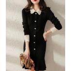 キーワード:ワンピース タイト 刺繍 長袖 膝丈 無地