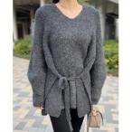参考商品名:ウエストリボンVネックアルパカ混オーバーニット