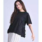 キーワード:tシャツ レディース uネック フリル 半袖 無地