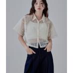 キーワード:ブラウス シャツ レディース ショート丈 レース レギュラーカラー 刺繍 半袖 キレイめ モード 夏 大人カジュアル