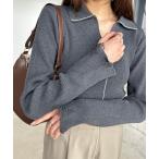 キーワード:ニット セーター レディース vネック フリル ワンポイント 長袖 無地