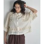 キーワード:ブラウス シャツ レディース レース レギュラーカラー 刺繍 半袖 無地