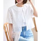 キーワード:ブラウス シャツ レディース ショート丈 レース レギュラーカラー 半袖 フェミニン 夏 大人カジュアル