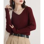 キーワード:ニット セーター レディース vネック 長袖 無地