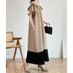 参考商品名:バイカラーフレアスリーブロングワンピース