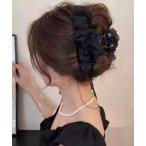 商品名:【IZU】 ボリュームシフォンバンスクリップ ヘアクリップ(ブラック/ピンク)