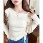 キーワード:ニット セーター レディース リボン 長袖 無地 WEB限定 デート フェミニン プチプラ 記念日 秋 大人カジュアル 定番 旅行
