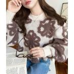 キーワード:ニット セーター レディース クルーネック ショート丈 花柄 長袖 秋 冬