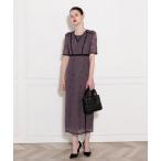 参考商品名:【LEJA】袖透け感花柄レース配色パイピングスリットロングドレスワンピース