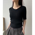 キーワード:ニット セーター レディース uネック 七分袖 五分袖 無地