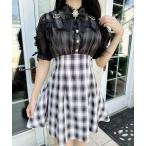 キーワード:ワンピース ショート ミニ丈 チェック ビジュー フリル フレア リボン レース 半袖 ガーリー デート フェミニン