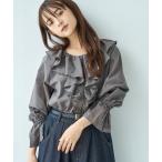 キーワード:ブラウス シャツ レディース コットン フリル 長袖 無地 オフィスカジュアル デート 記念日 授業参観 秋 大人カジュアル