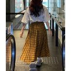 スカート ウエストゴム チェック プリーツ ロング 秋 冬