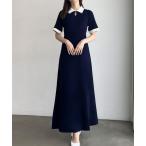 参考商品名:半袖バイカラーセミフレアニットワンピース(ペチスカートセット)