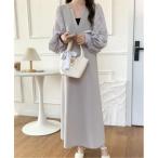 商品名:【25年秋冬新作】【2WAY】Vネックぽわん袖スリット入りフラワージャガードロングワンピース