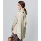 キーワード:ブラウス シャツ レディース サテン ボウタイ ロング丈 長袖 無地