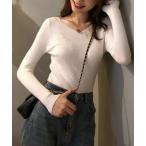 キーワード:ニット セーター レディース vネック ロング丈 長袖 無地