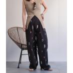 キーワード:パンツ レディース ウエストゴム カットオフ ストレート フルレングス レギュラー ワイドパンツ 花柄
