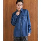 キーワード:ブラウス シャツ レディース デニム レギュラーカラー 長袖 無地 大人カジュアル