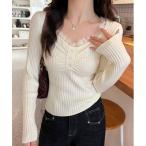 商品名:【2025秋冬新作】レースVネックリブニットトップス