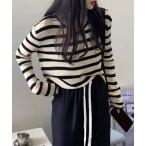 キーワード:ニット セーター レディース vネック ボーダー 長袖