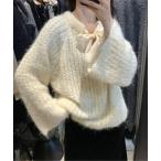 キーワード:ニット セーター レディース uネック リボン 長袖 無地