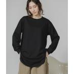 tシャツ レディース クルーネック ロング丈 長袖 無地