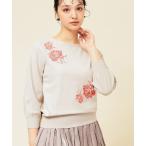 キーワード:ニット セーター レディース uネック ショート丈 花柄 刺繍 長袖