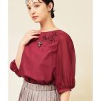 商品名:【フラワーモチーフ付き/袖シフォン】肘下丈ブラウス
