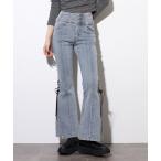 商品名:.works ストレッチデニム3個釦フレアーパンツ スェードコードスピンドルレースアップ