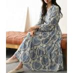 商品名:花柄×ウエストギャザーVネックロングワンピース