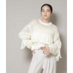 キーワード:ニット セーター レディース クルーネック フリンジ ボーダー 長袖