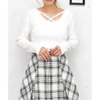 キーワード:ニット セーター レディース vネック 長袖 無地 ガーリー 大人カジュアル