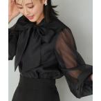 参考商品名:【ドレスアップデコルテ ブラウスシリーズ】タックスタンドカラー オーガンジーシアーボウタイブラウス