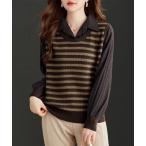 キーワード:ニット セーター レディース vネック ボーダー 長袖 無地 キレイめ 韓国ファッション 大人カジュアル