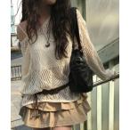 ニット セーター レディース vネック フリンジ 長袖 無地