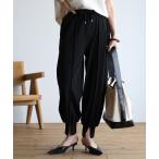 キーワード:パンツ レディース ウエストゴム ハイウエスト フルレングス リブ ワイドパンツ 無地