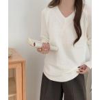 キーワード:ニット セーター レディース vネック 長袖 無地 ベーシック 韓国ファッション 大人カジュアル