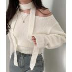 キーワード:ニット セーター レディース オフショルダー リボン 長袖 無地 フェミニン 韓国ファッション 大人カジュアル