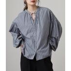 キーワード:ブラウス シャツ レディース コットン ストライプ リボン 開襟 長袖 デート ナチュラル ピクニック レジャー フェミニン 秋 大人カジュアル 定番 冬 旅行